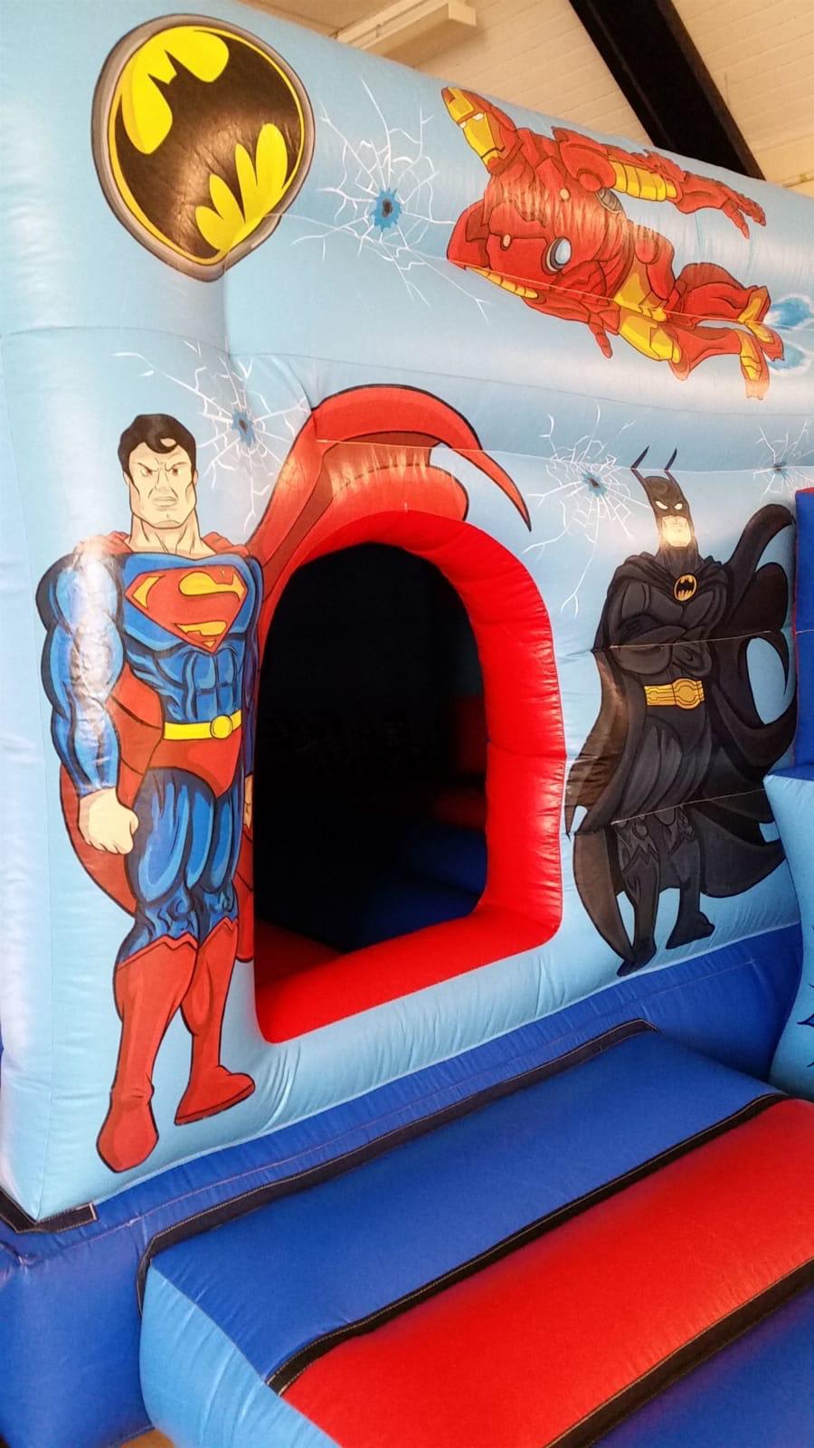 Book online now for the impressive superhero combo castle for your party/event in Edinburgh, East Lothian, West Lothian and Midlothian.