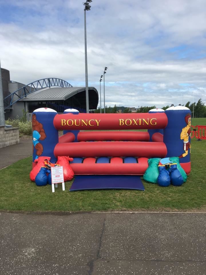 Be an unforgettable boxing legend by hiring our bouncy boxing ring in Edinburgh and surrounding areas, with super hilariously over-sized gloves for adults and kids this will keep your guests entertained for hours! This looks so easy but is quite a challenge because of the over-sized gloves! Great for team building events, birthdays, garden parties, gala days, stags, hen parties, charity events or fun days.